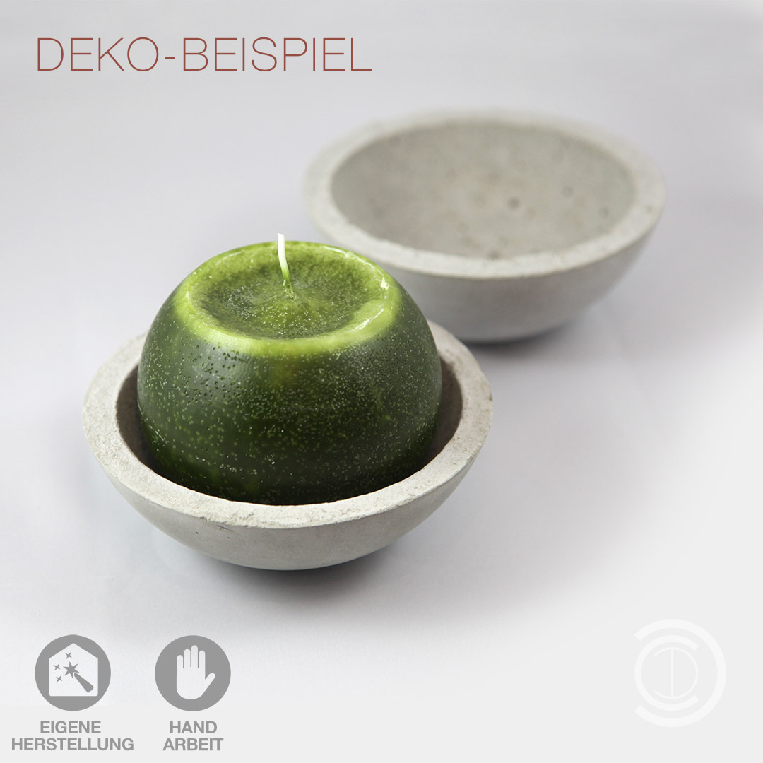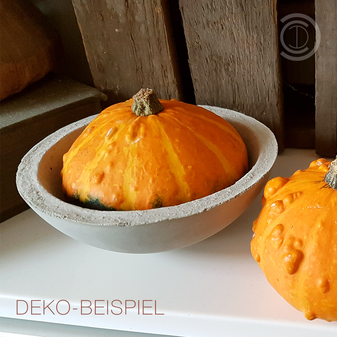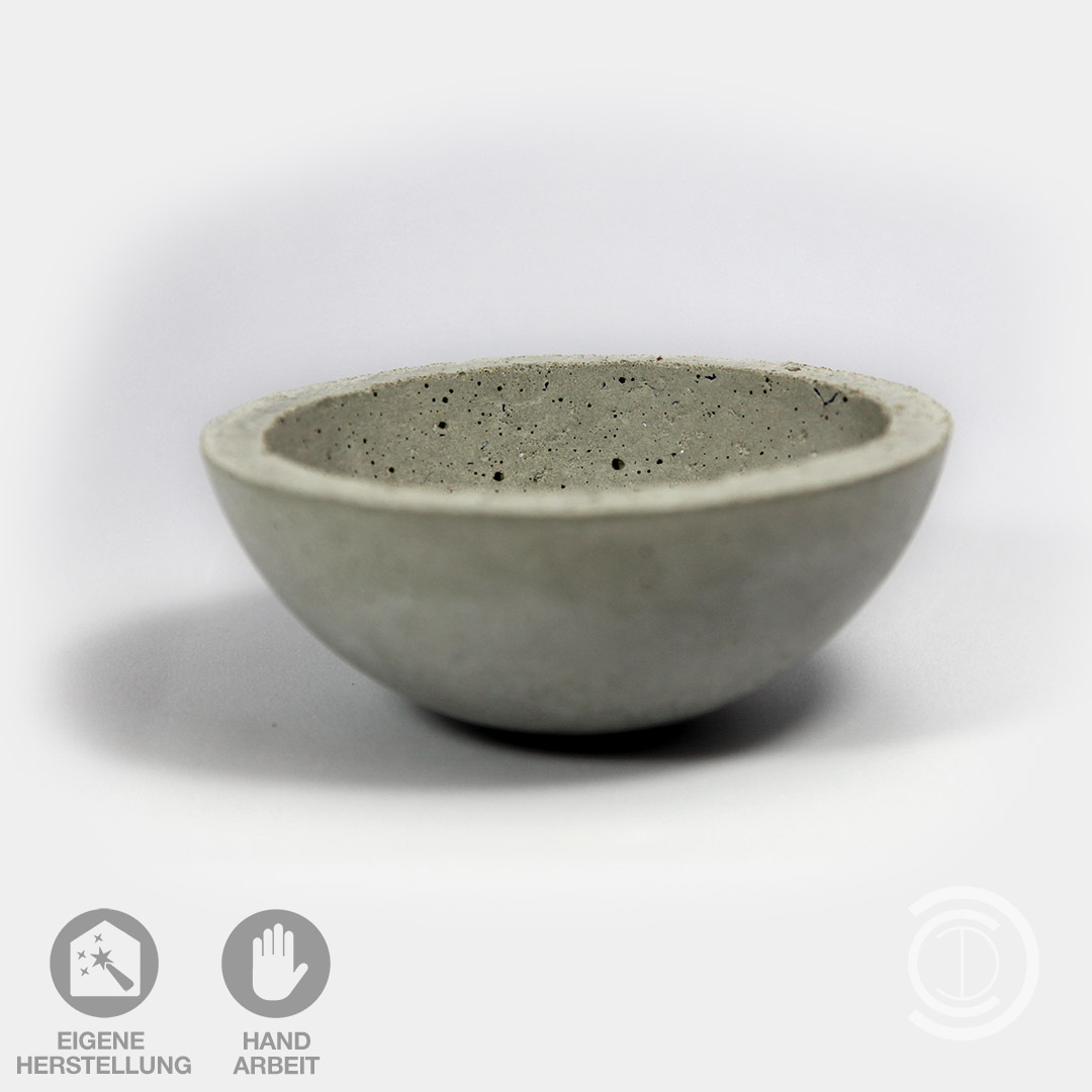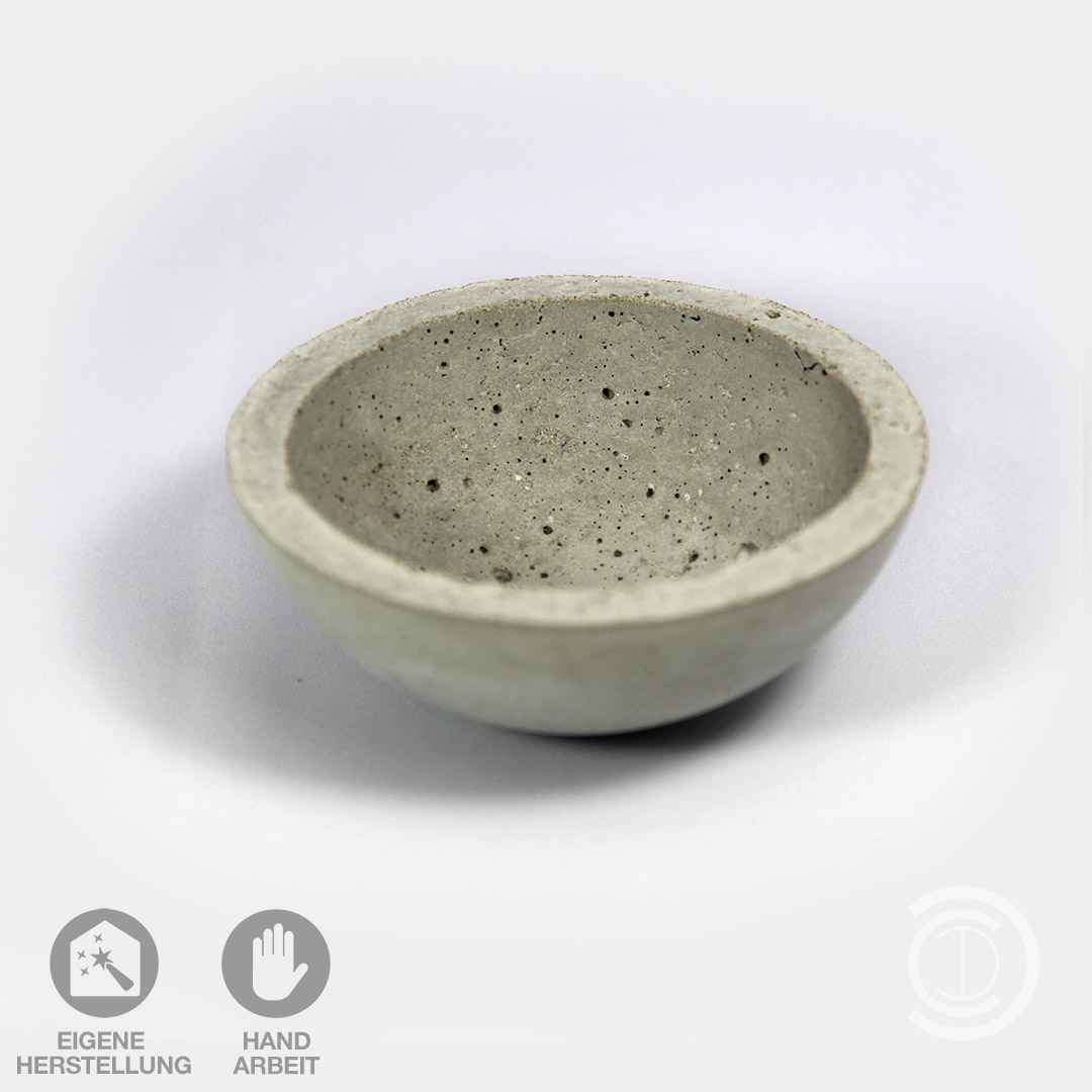 In Handarbeit gefertigte Beton-Schale zur Dekoration. Durchmesser knapp 14cm, Stärke ca. 1cm, Höhe ca. 6cm.